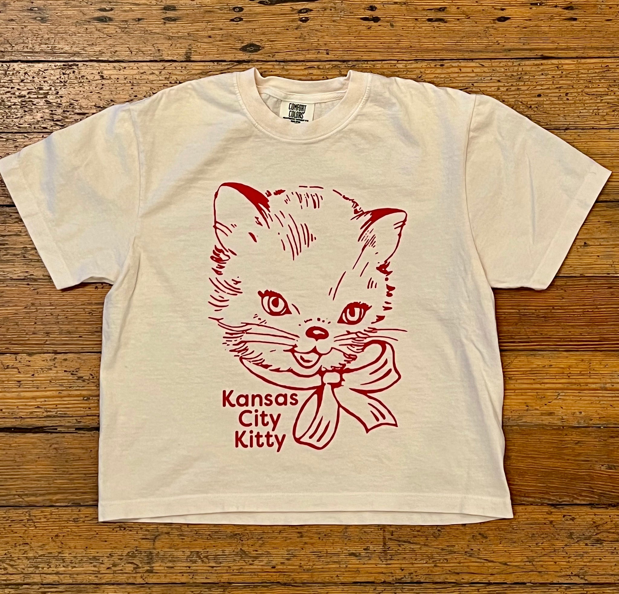 KCK Kitty With Ribbon Ivory Cropped Tee